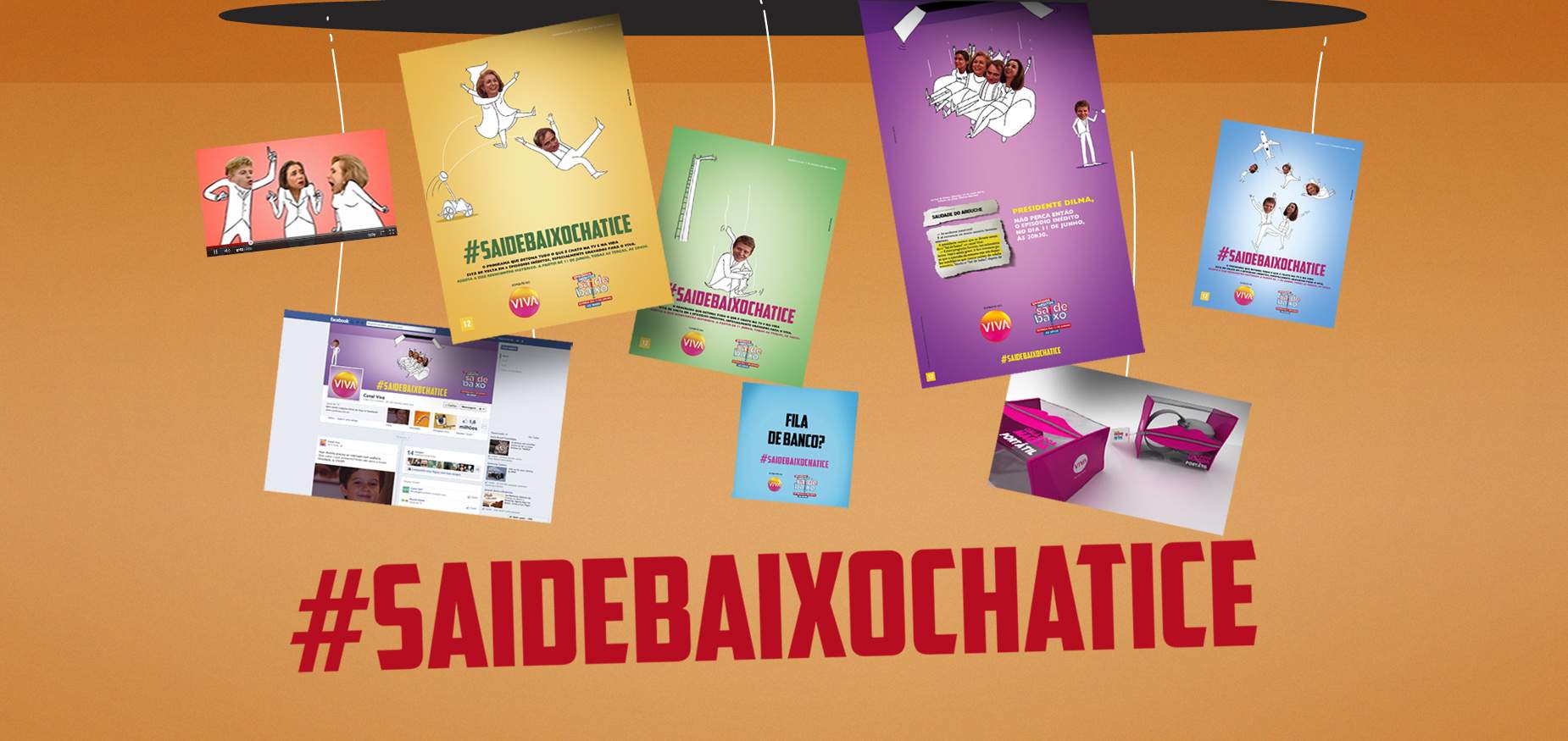 As peças exploram de forma divertida a hashtag #saidebaixochatice, e colocam os inesquecíveis personagens acabando com tudo que não é divertido. Foram criadas vinhetas, anúncios, capas falsas para jornais, ações e peças on-line, painéis de aeroporto e um brinde diferenciado: um protetor auditivo apelidado de Cala Boca Magda Portátil.