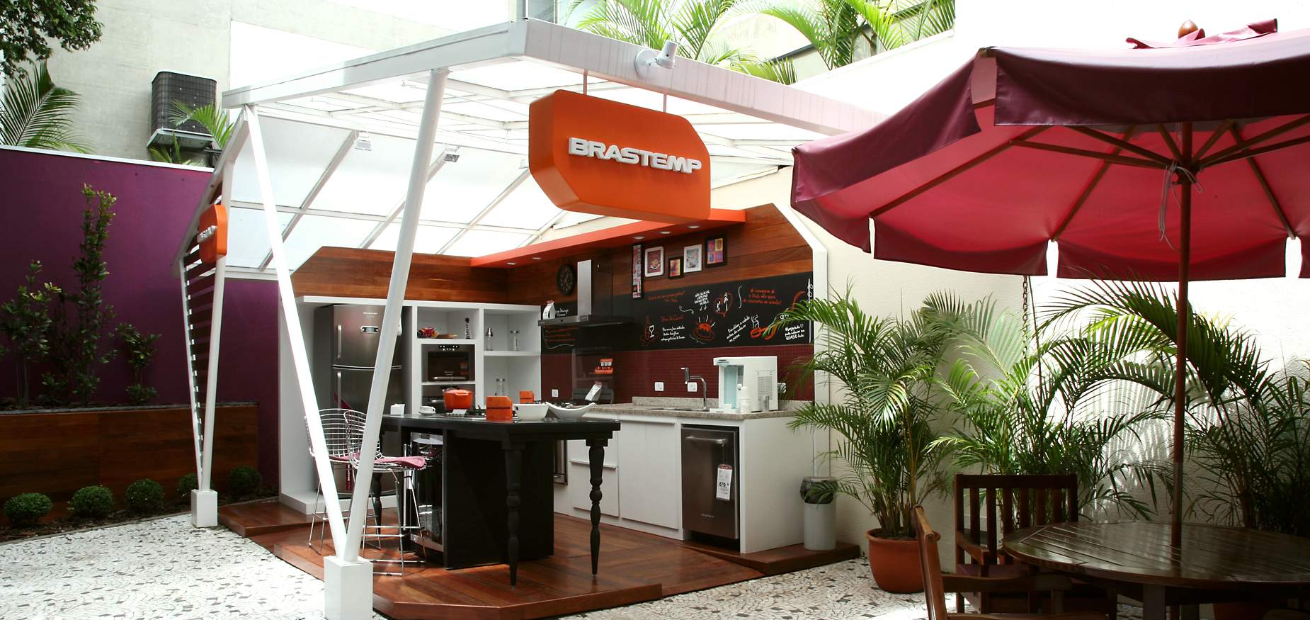 Espaço projetado para expor a linha Brastemp Gourmand nas principais lojas de varejo das grandes capitais do Brasil. É um ambiente humano e vivo, informal e funcional, único, diferente dos demais espaços de marca presentes nessas lojas.