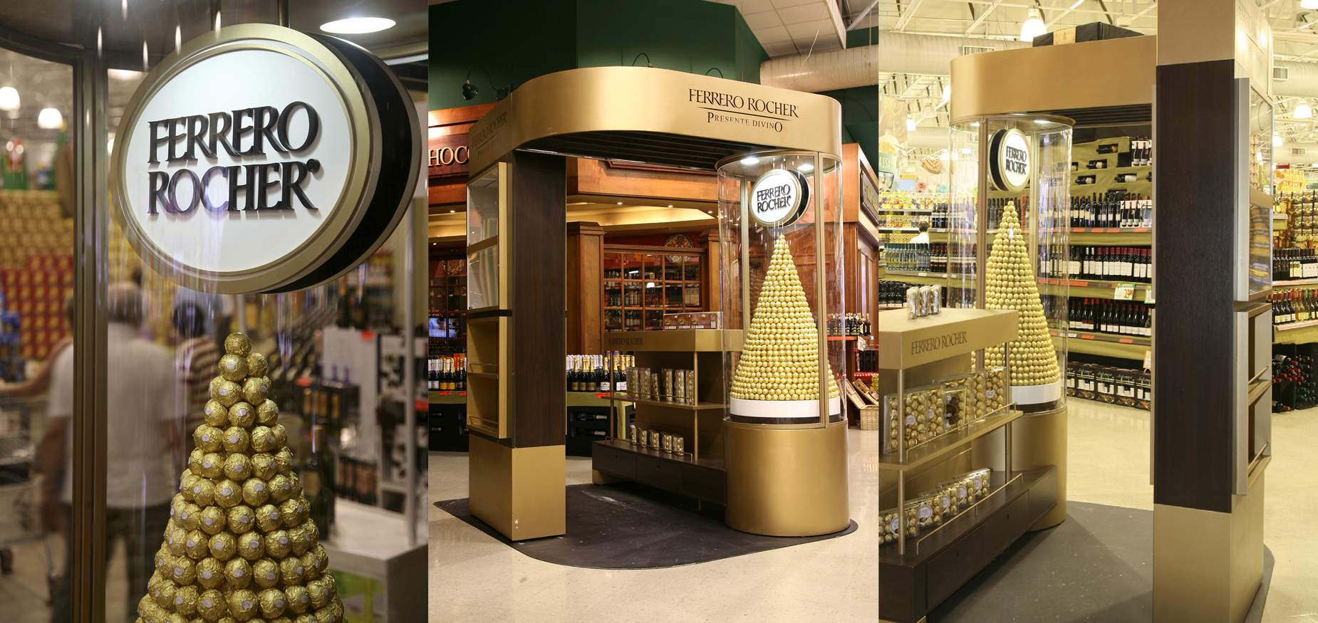 O projeto é um espaço de marca sofisticado que envolve o consumidor, promovendo exposição e degustação do produto. O ícone Ferrero Rocher foi reproduzido em uma pirâmide com 1.300 bombons. Highlighters iluminados destacando os produtos e o color code dourado da marca deixaram o ambiente com visual premium. Uma ação com promotoras e embalagens especiais para presente complementaram o projeto. As ilhas foram montadas em PDVs estratégicos e o resultado foi aumento de vendas em 491% nas lojas que contavam com as ilhas, contra 3% nos locais sem o espaço.