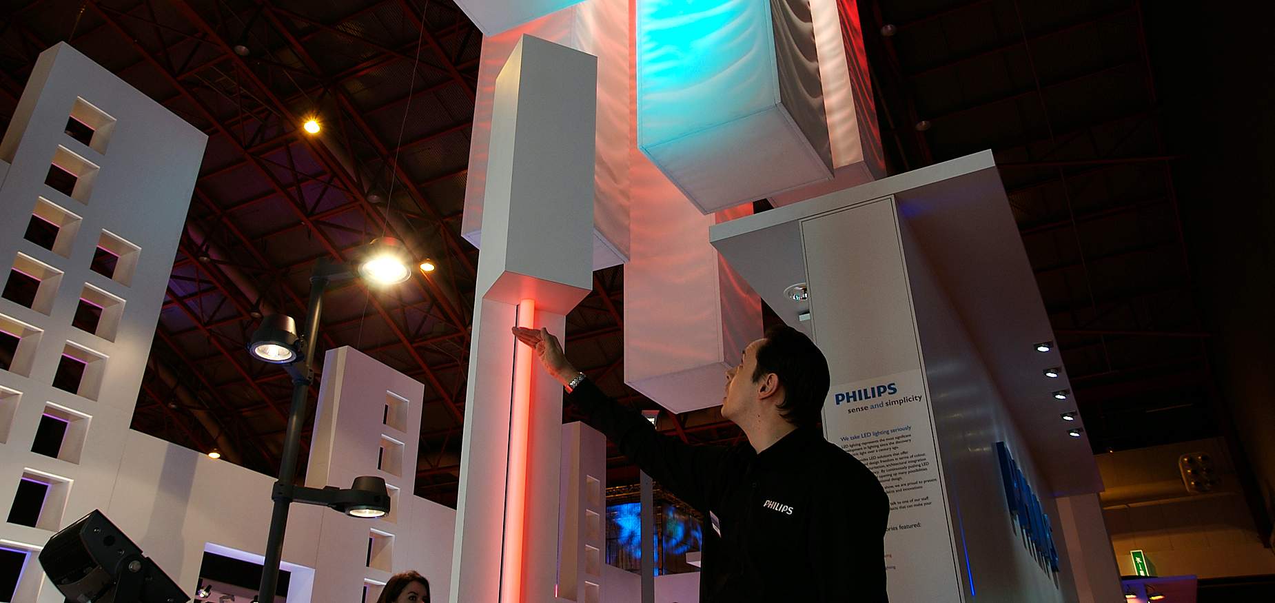 Criamos um espaço imersivo que apresentava 25 tipos diferentes de produtos e aplicações em LED, permitindo que os visitantes controlassem a iluminação do estande e conhecessem as suas principais características e vantagens. O objetivo foi mostrar a arquitetos e designers, em tempo real, como a tecnologia poderia aumentar seu potencial criativo.
