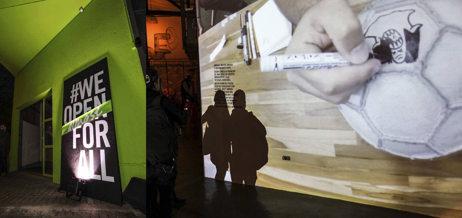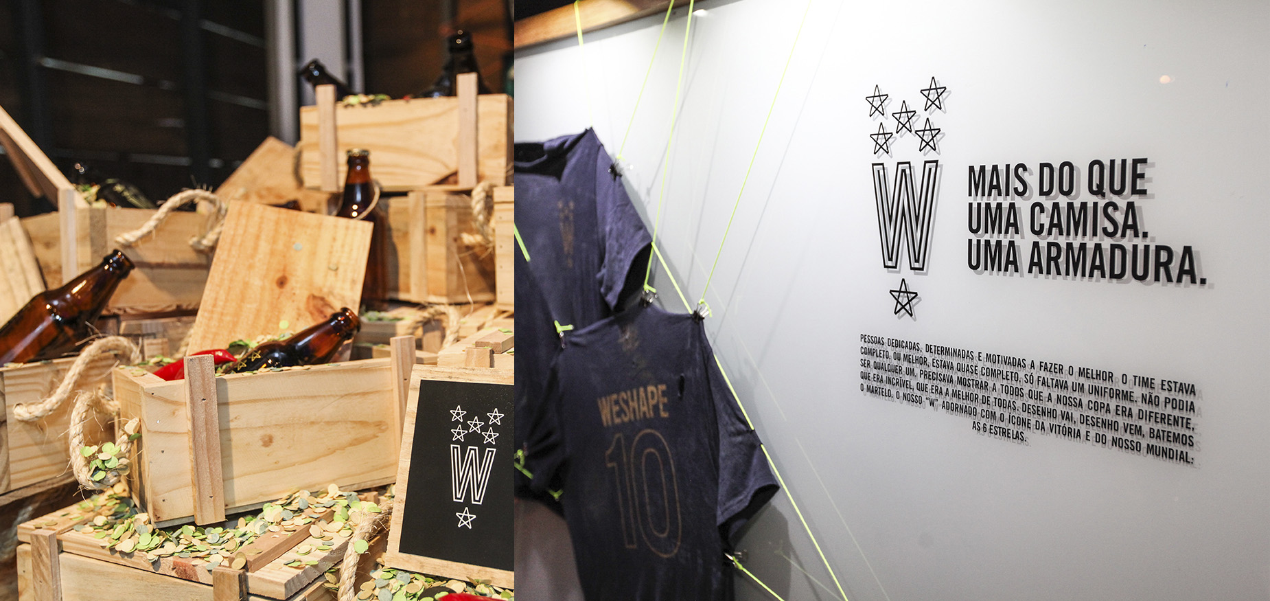 No primeiro We Open For All, a WeShape Creatives abriu suas portas para amigos e profissionais do mercado. Quem visitou a agência pôde conferir, em primeira mão, a exposição Copa 6 Estrelas, criada exclusivamente para celebrar os projetos que tiveram como foco o Mundial realizado no Brasil. Entre os trabalhos exibidos, uma bola artesanal com as histórias dos jogos, um kit de cerveja feito para ser aberto apenas no dia da final e uma série de pôsteres que mostrava a visão da agência sobre suas principais campanhas.